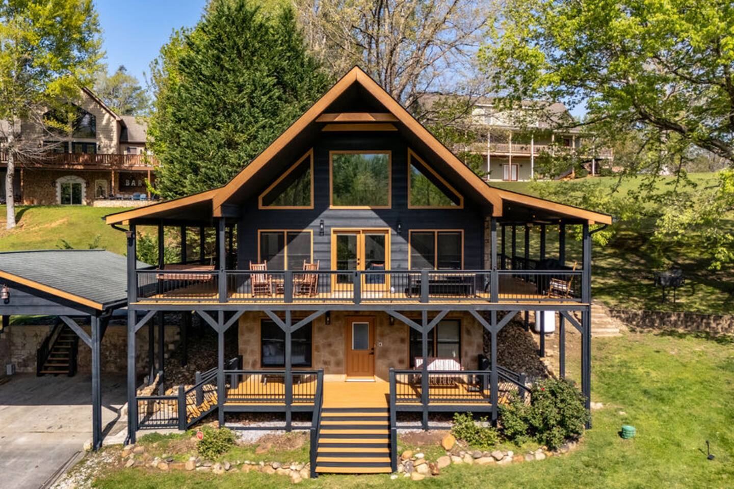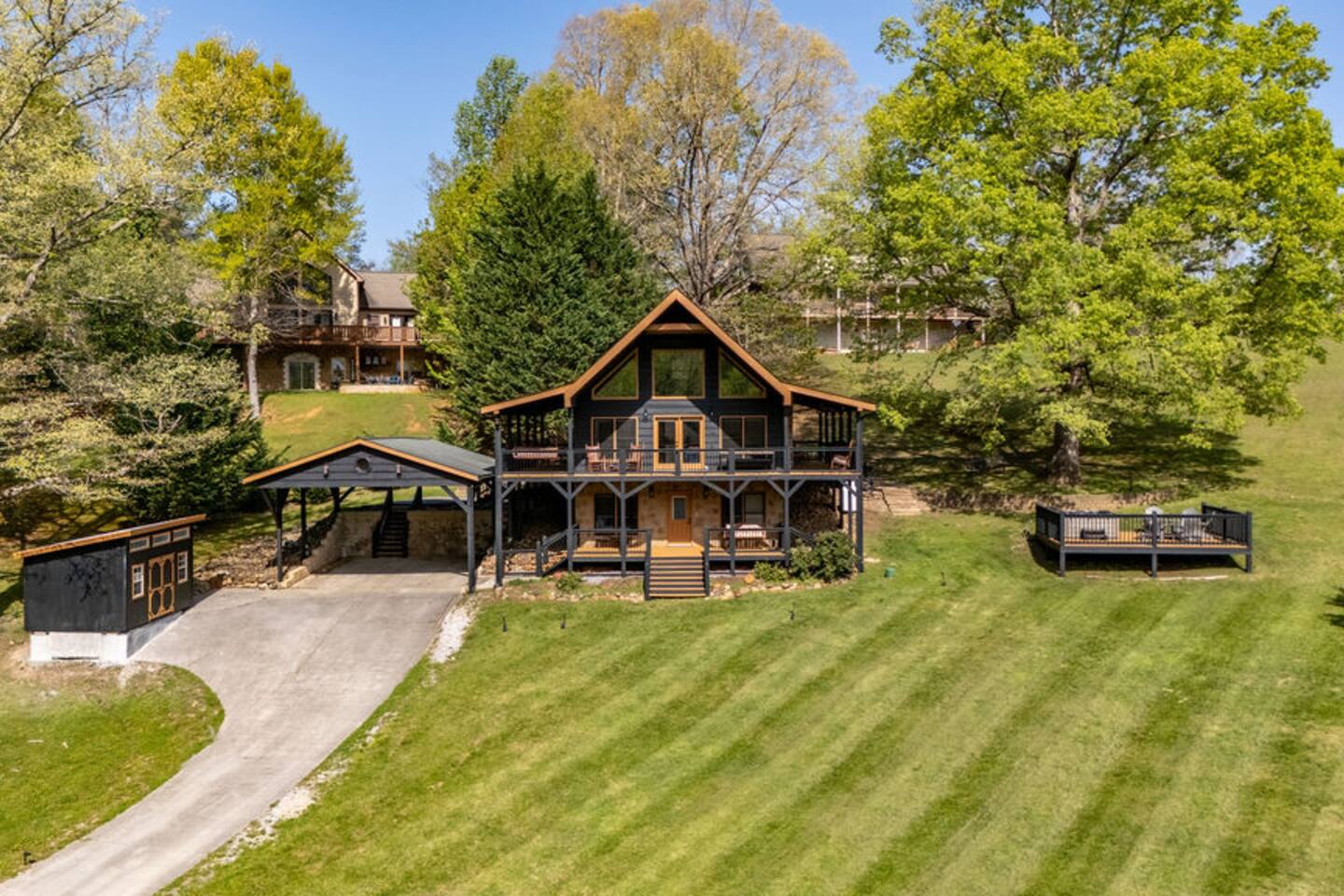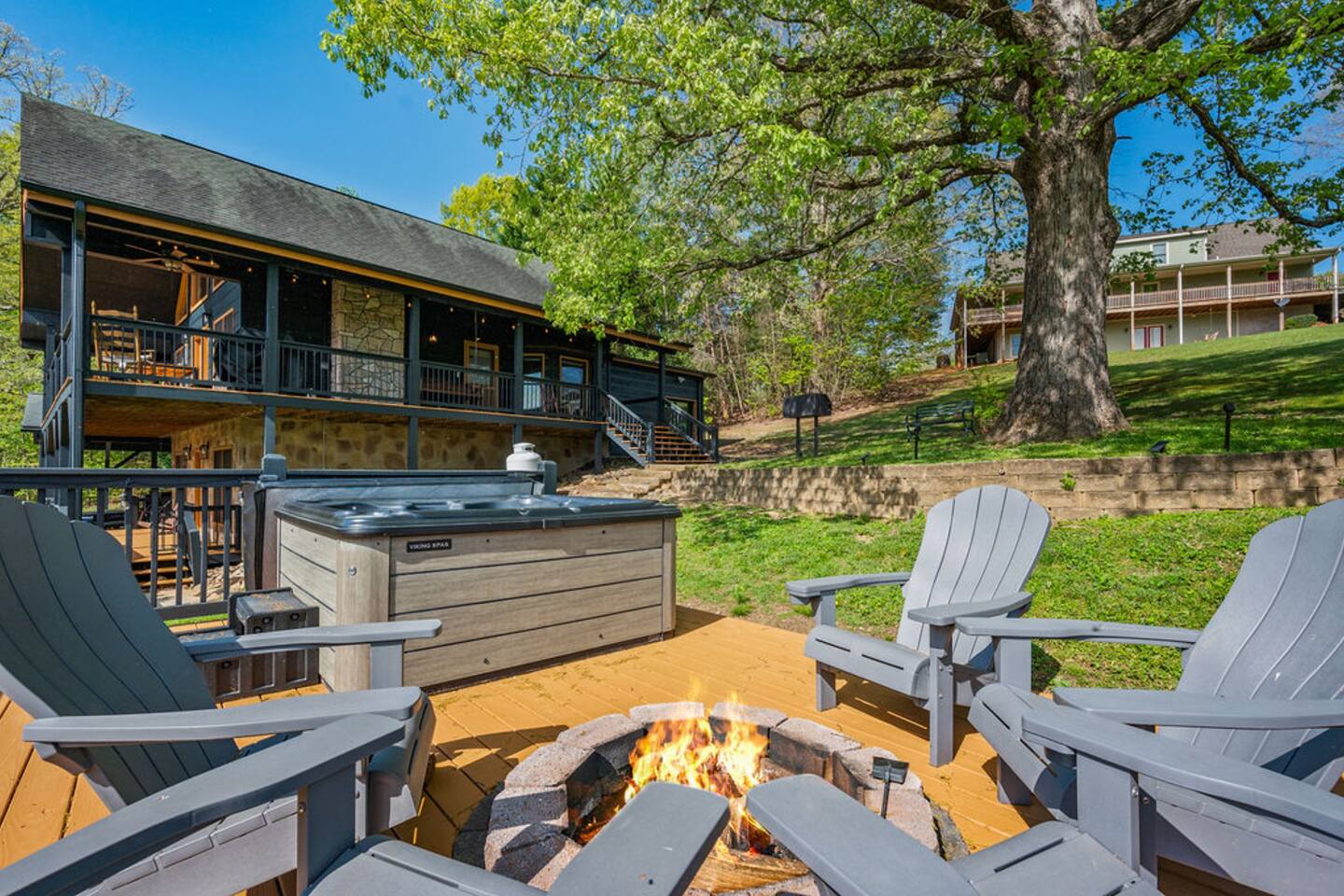 Enjoy exclusive access to this entire mountain retreat! Spread across three thoughtfully designed levels, our cabin offers space for everyone to relax and have fun. Outside, discover your own mountain oasis featuring: Expansive grassy yard where children can play freely Private deck with relaxing hot tub and cozy fire pit Game garage packed with entertainment Two spacious attached decks with classic rocking chairs and inviting swings Inside, the cabin's multi-level design ensures both togetherness and privacy: Lower level indoor play room for family fun, and bunk room for the little ones Main level with open-concept living and fully-equipped kitchen Upper loft retreat for additional relaxation space Whether gathering together or seeking a quiet moment alone, our cabin provides the perfect setting for your Smoky Mountain getaway. See 3D Floorplan in "Additional Photos"!
