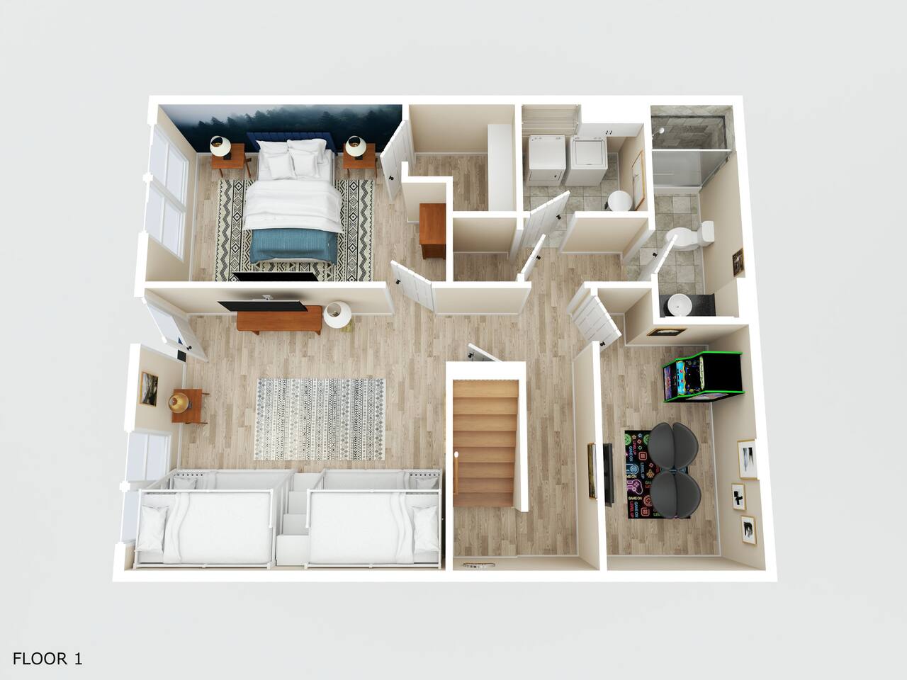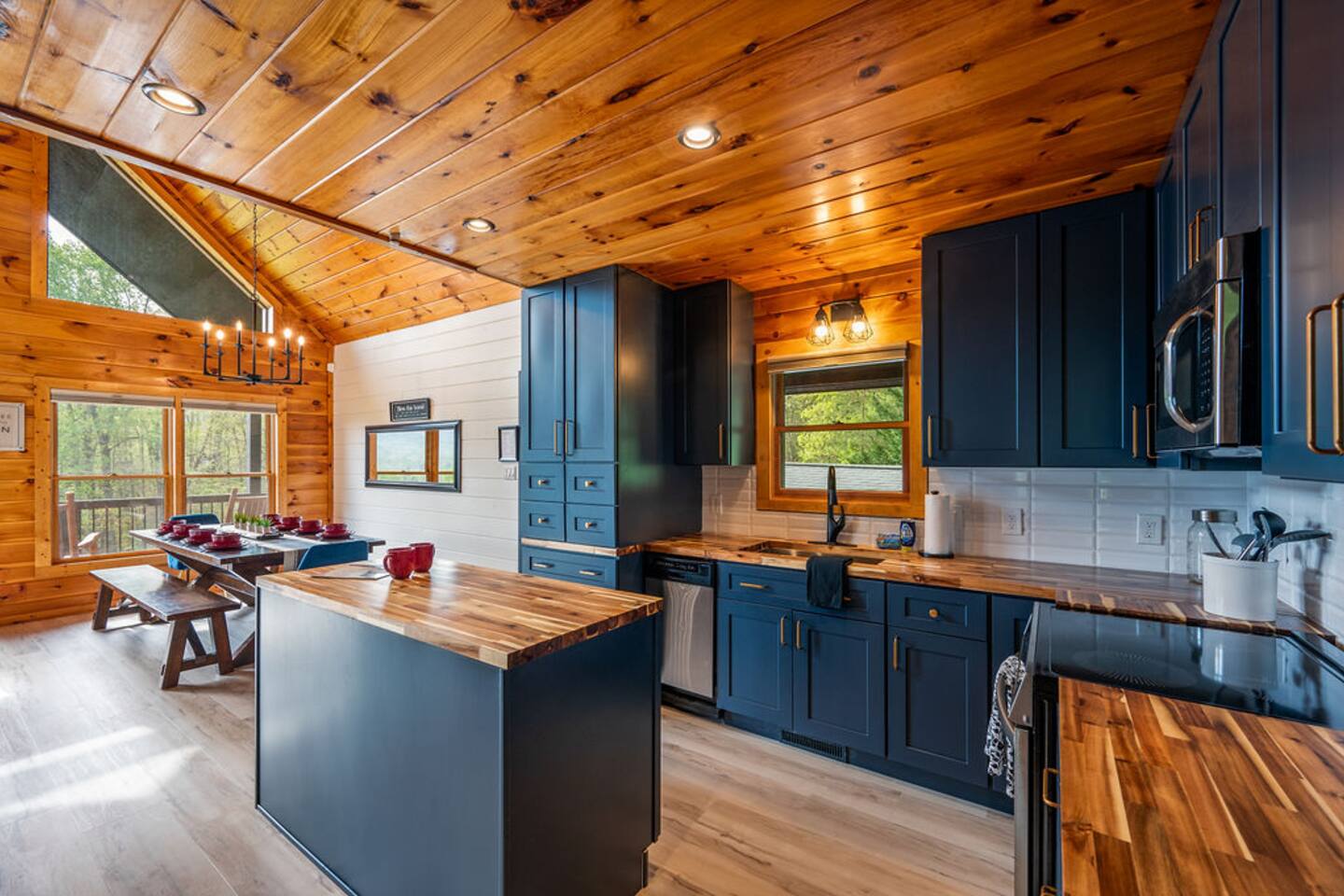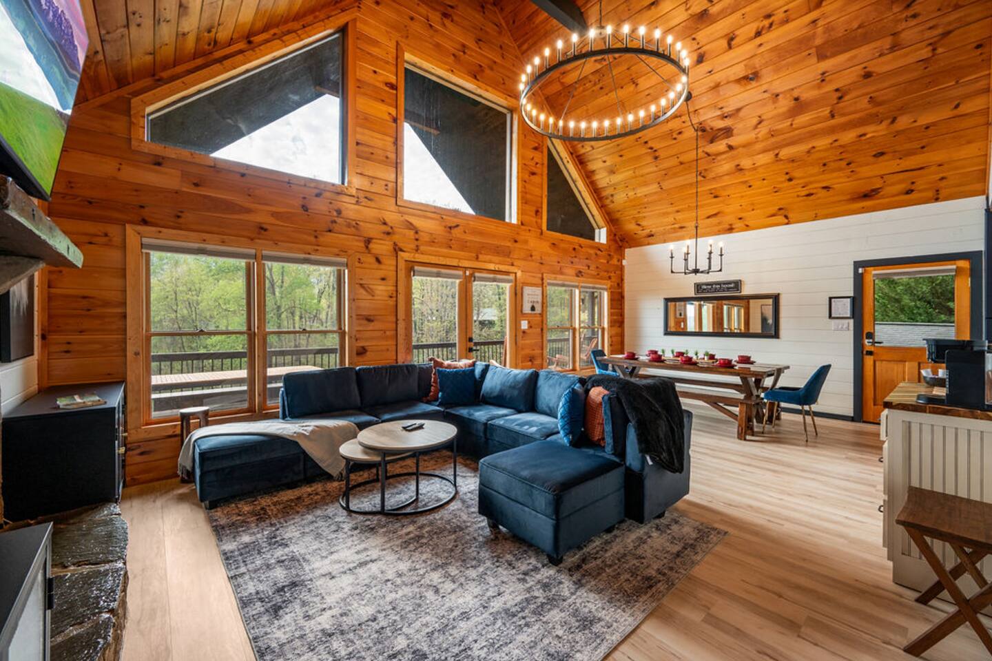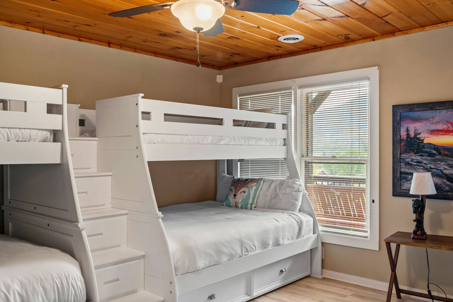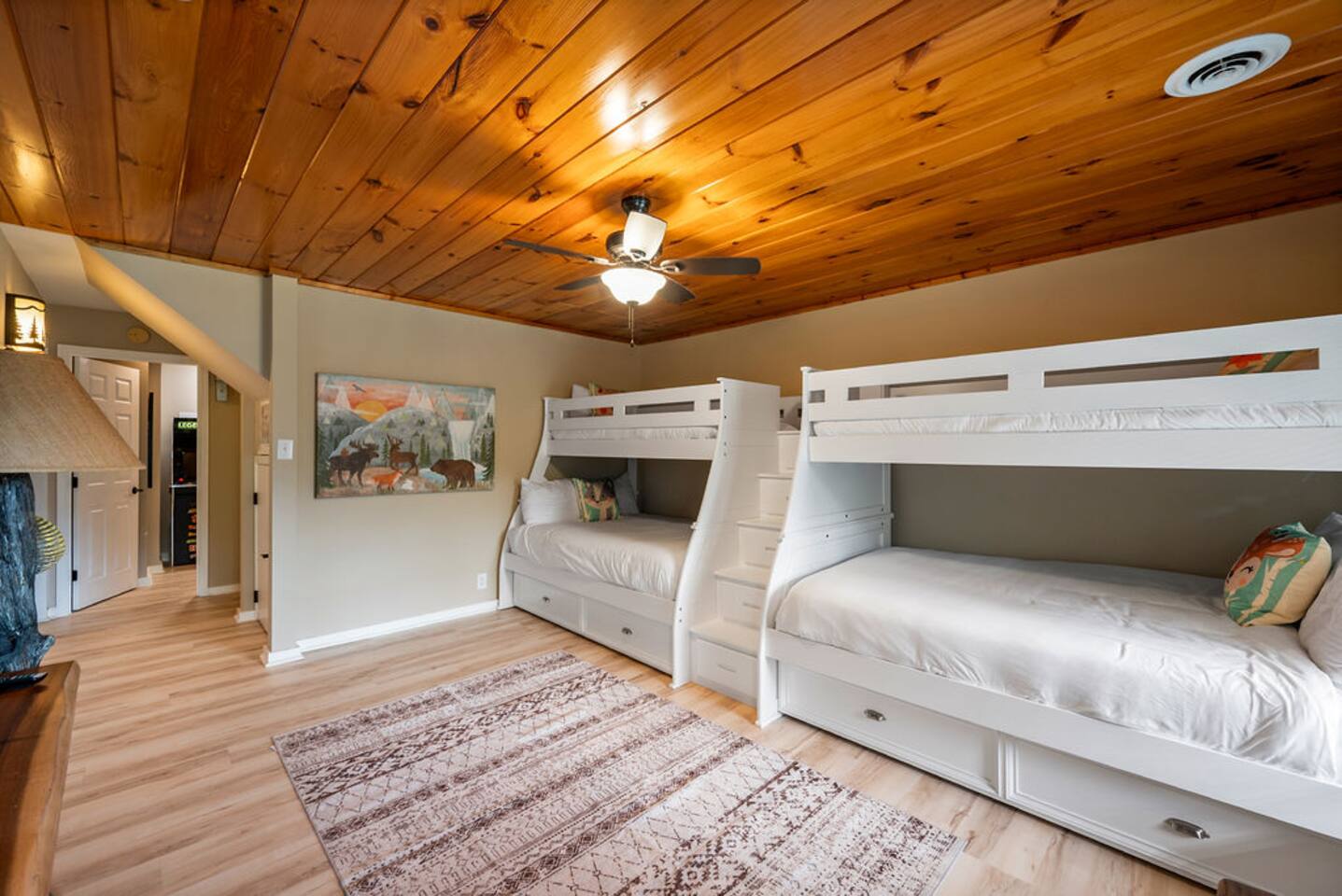 Have a blast with the whole family at our stylish, updated cabin located in dreamy Wears Valley. This newly refreshed cabin features high ceilings and large windows overlooking the mountain landscape, wraparound decks, a hot tub and fire pit. Adults and kids alike will find plenty of entertainment in the game garage (pool table, ping pong, TV) and indoor game room (Arcade, PS5, nerf wall). Three king beds and a bunk room offer plenty of comfortable sleeping spaces for everyone. See 3D Floorplan